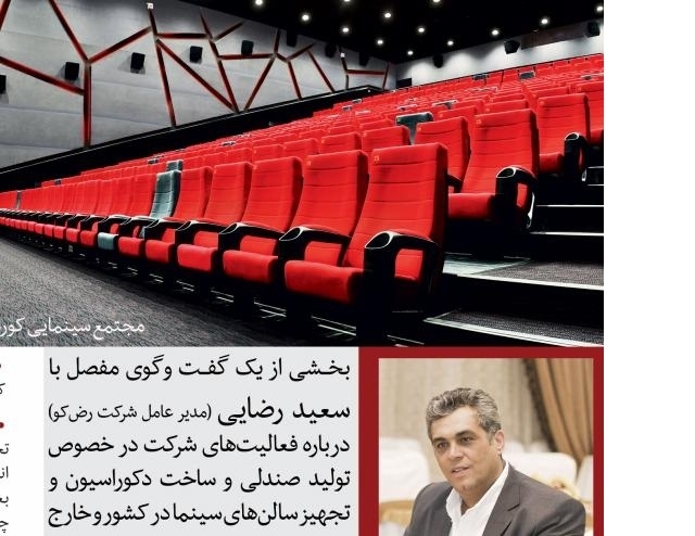 گروه صنعتی رض کو اولین تولید کننده انواع صندلی های سینمایی ،صندلی های اداری،صندلی های آمفی تئاتر،مبلمان اداری،مبلمان وی آی پی،طراحی واجرا دکوراسیون داخلی ،نور پرداری،نصب صندلی های سینمایی وآمفی تئاتر