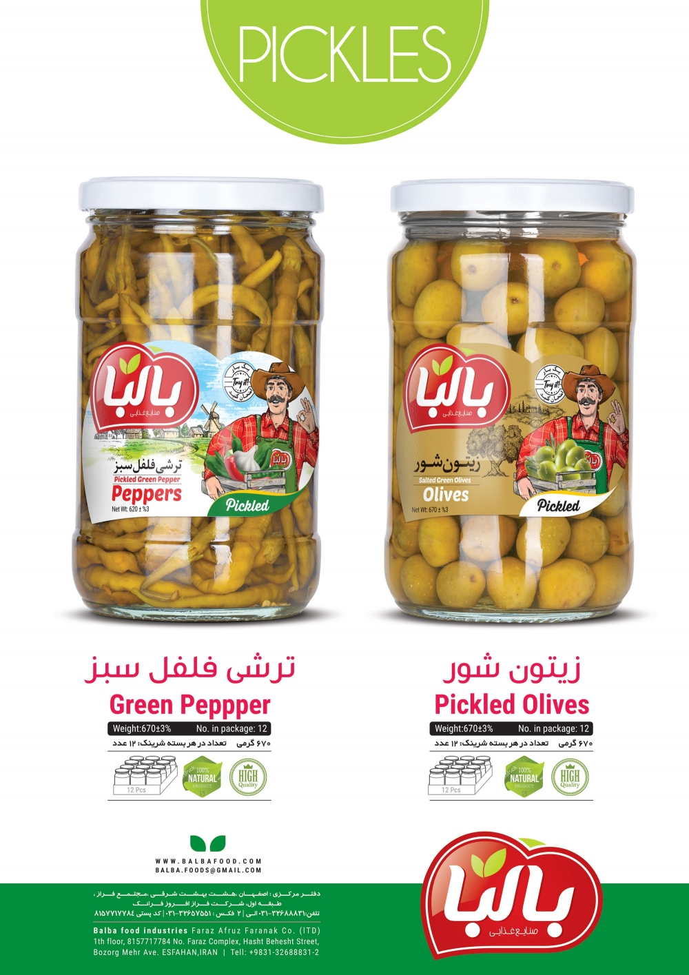 ترشی فلفل سبز شیشه 680 گرمی تعداد در بسته 12 عددی ترشی زیتون شیشه 680 گرمی تعداد در بسته 12 عددی