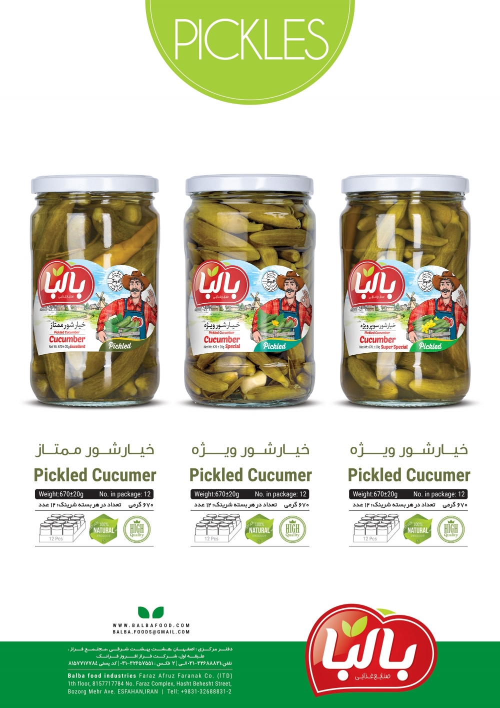 خیارشور سوپر ویژه ، ویژه ، ممتاز ، درجه 1 شیشه 680 گرمی