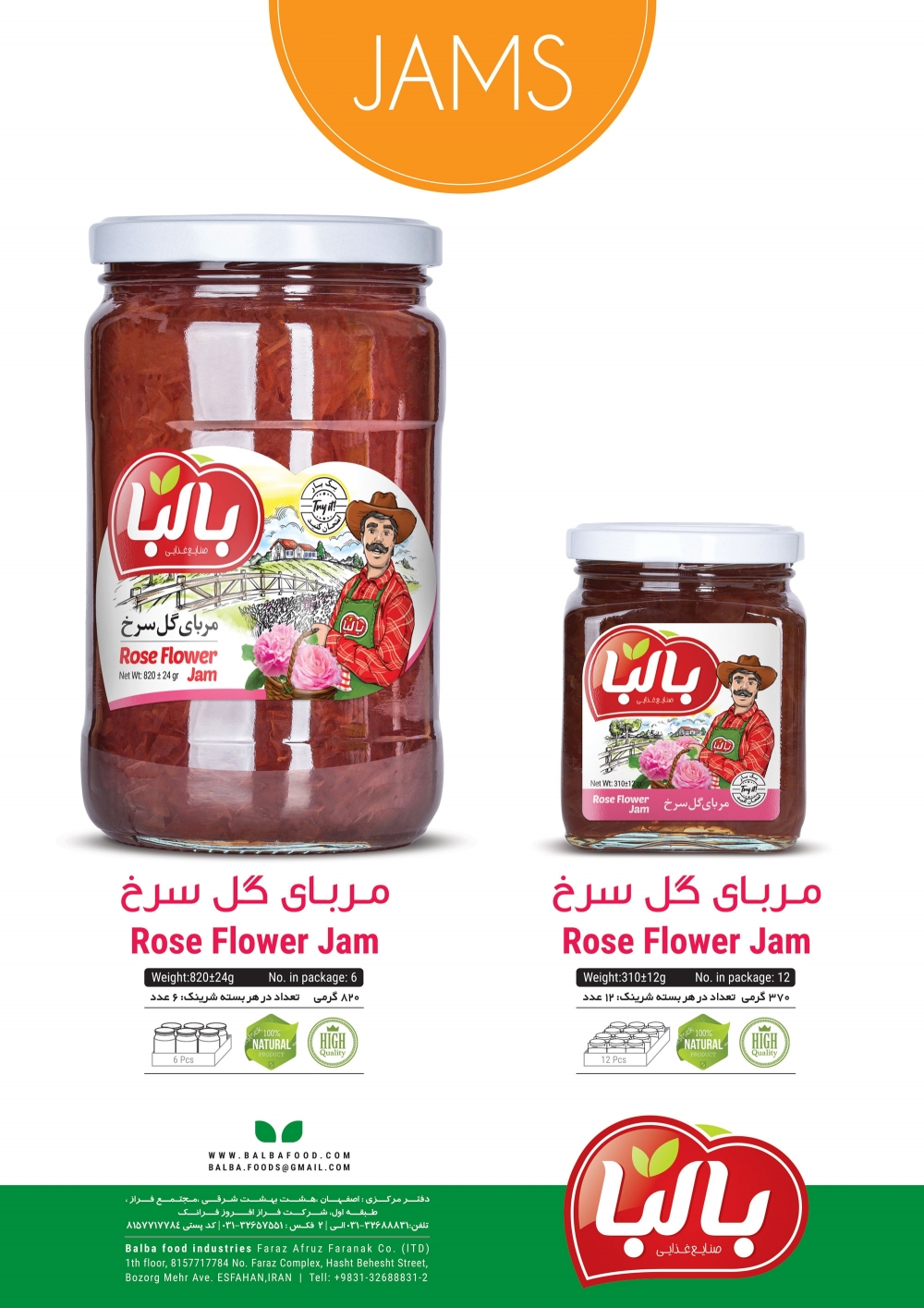 مربا گل سرخ شیشه 820 گرمی تعداد در بسته 6 عددی مربا گل سرخ شیشه 310 گرمی تعداد در بسته 12 عددی