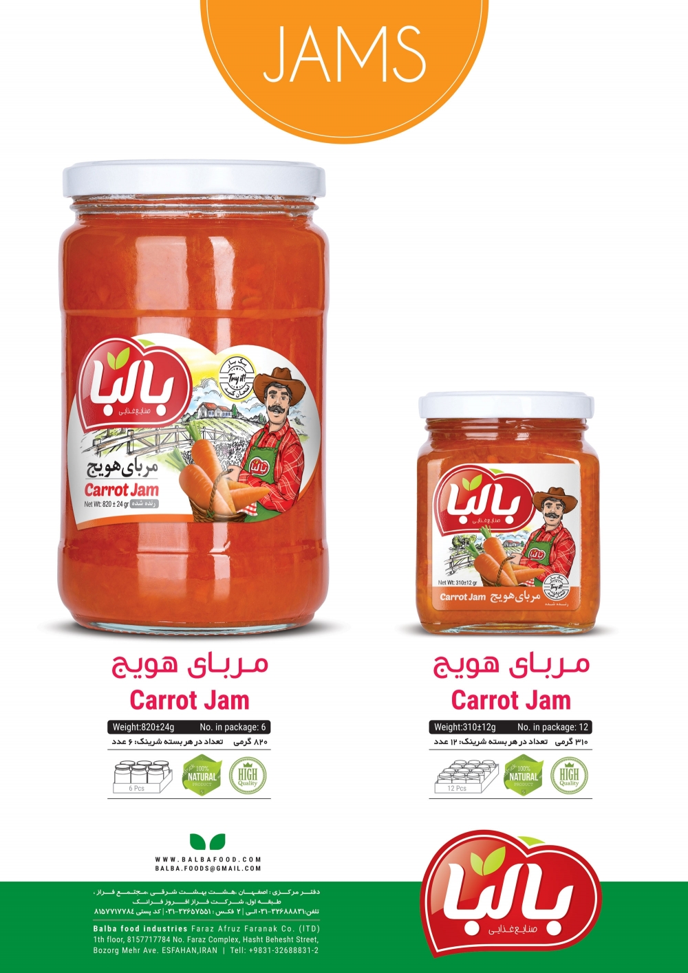 مربا هویج شیشه 820 گرمی و شیشه 310 گرمی