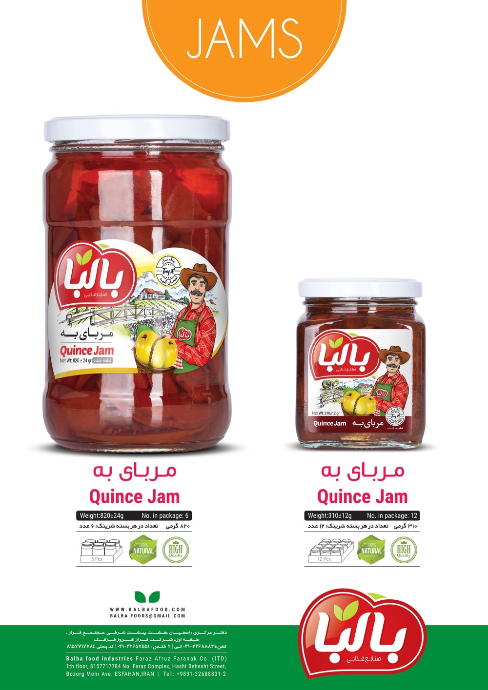 مربا بالنگ شیشه 820 گرمی و 310 گرمی